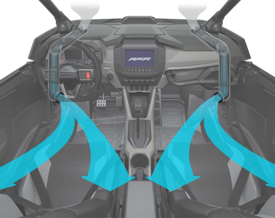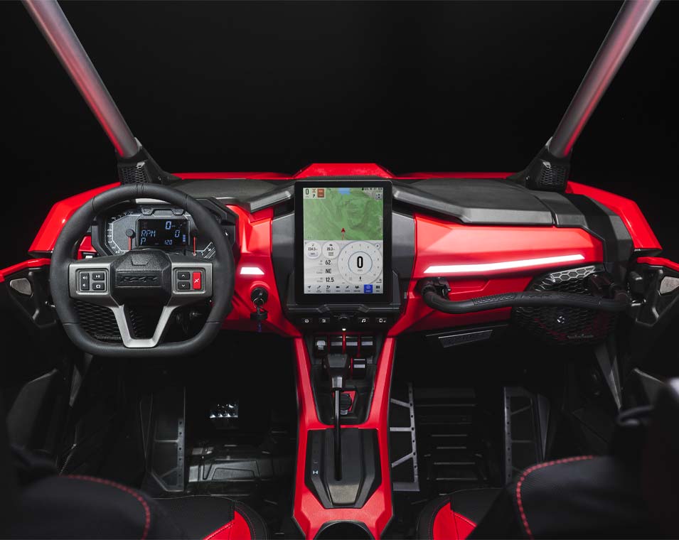 La performance commence à l’intérieur. Le RZR Pro R offre un habitacle raffiné, pensé pour le confort et la maîtrise, même sur les parcours les plus exigeants.